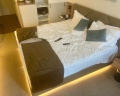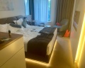 4. Номер. У нас был номер категории стандарт (18 кв.м.). Две тумбочки у кровати, раскладывающийся стол. Небольшой журнальный столик, кресло, пуфик. В ванной электрическая сушилка, полотенца, косметические и гигиенические наборы, жидкое мыло, крем для рук, шампунь и гель для душа 2 в 1, кондиционер для волос. Чайная станция включает в себя чайник, 2 упаковки чёрного и 2 зелёного чая, 2 пакетика кофе, 2 упаковки сливок, пакетики сахара, 2 бутылки воды по 0,5 л. Пополнение ежедневно. Есть номер с верандой, но она общая! Отдельная радость: наличие умных телевизоров с онлайн-кинотеатрами! Для посещения бассейна в номере имеются халаты и тапочки, но на ресепшн спа-зоны выдают непромокаемые одноразовые тапочки. В номере есть очки виртуальной реальности.