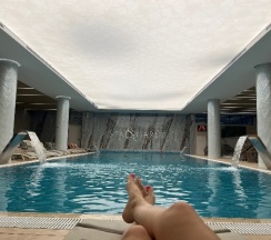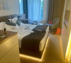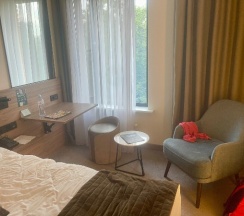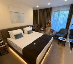 Весьма достойный отель. За счет того что сам отель не большой , то и номера не очень просторные, но вполне хватает для комфортного отдыха. Отличная зона спа и терм. Порадовали сеансы группового парения. Хороший шведский стол на завтрак , есть из чего выбрать. Т.к. брал полупансион, то ужин тоже был включен. Выбор конечно не большой , но порции достойные , хватает чтобы наесться. Как альтернатива полноценному отдыху, идеально подходит на выходные