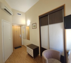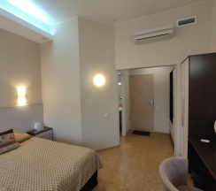 Комната с двуспальной или двумя раздельными кроватями. В комнате есть кондиционер, пробковый пол, отопление, шкаф, телевизор с плоским экраном, розетки около кровати, постельное бельё и собственная ванная комната с душевой кабиной. В ванной комнате теплый пол, предоставляется комплект полотенец, фен.