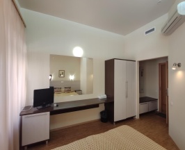 К услугам гостей лифт, 7 меблированных комнат различных категорий, Стандарт, Улучшенный и Комфорт. В каждой комнате есть шкаф, телевизор, кондиционер, собственная ванная комната оборудована душем.