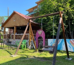 Хороший персонал мы заказали чтёрехместний номер большой комната ест чайник телевизор душ туалет Есть мангални зона беседка парковка