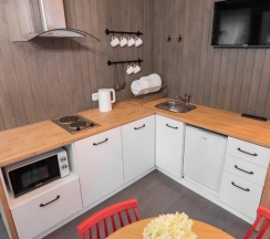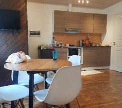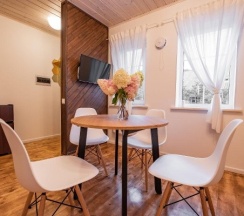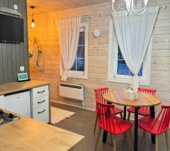 Чисто, уютно. Провели две ночи в одном из гостевых домиков. Подойдет для компании. В домике все есть для приготовления еды, туалетные принадлежности. Догфрендли, можно с небольшими собаками. Удобное расположение.