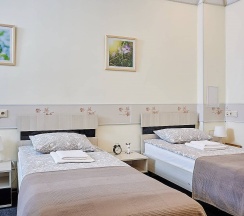 Понравилось: Сами номера превзошли все наши ожидания! Сделан очень хороший качественный ремонт, имеется вся необходимая бытовая техника (микроволновка, холодильник, чайник,кондиционер, фен), даже компьютер! Также предоставляются средства гигиены, вплодь до лака для волос. Одноразовые тапочки и средства ухода за обувью тоже есть в номере. Кравати и диван удобные, большие по размеру, с качественным постельным бельем идеальной чистоты. Встречала нас очень любезная женщина, которая ответила на все наши вопросы, проверила документы и получила оплату (можно производить любым удобным способом (карта, наличные). На машине совсем не далеко до основных достопримечательностей. Вообщем, пребывание в этом отеле нам очень понравилось, качество прям европейское!