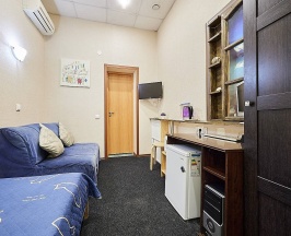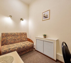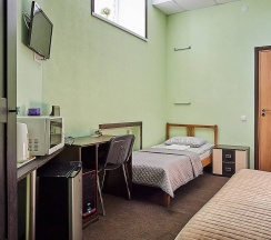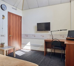 • Номер оформлен в светлых тонах, с напольным покрытием. Наличие компьютера и другого оборудования позволят вам почувствовать себя как дома. Очень хорошо подойдет для гостей, желающих уединиться и тихо отдохнуть. Обратите внимание - в номере нет окна! Заезд в номер с 14 часов до 23 часов. Шумные компании в номере запрещены.Размещение с животными не разрешено.