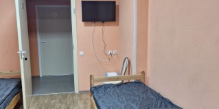 Четырехместный номер с кроватями. Санузел и душевые расположены на этаже. В номере есть шкаф для одежды, телевизор, гости могут воспользоваться чайником.