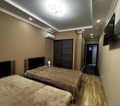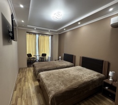 Просторный двух местный номер, с двумя раздельными кроватями. Телевизор, кондиционер, холодильник, чайник. Ванная комната с душевой кабиной.