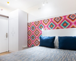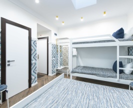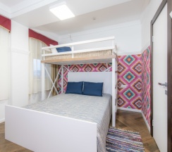 Четырехместный номер с двуспальной кроватью и двухъярусной кроватью и собственной ванной комнатой, площадью 20 кв.м, оснащенный мини холодильником, столовой посудой, смарт-ТВ, сплит-системой. Максимальное размещение – 4 человека. Размещение дополнительного гостя невозможно. Размещение с домашними животными не допускается.
