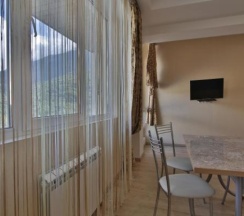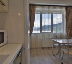 Апартаменты с балконом и видом на горы, площадью 35 кв. м, оснащенные кухней с плитой, холодильником, чайником, микроволновой печью, посудомоечной машиной и необходимой посудой. В апартаментах имеется сплит-система, спутниковое телевидение, фен, утюг, гладильные принадлежности. Ванная комната с душем и стиральной машиной. Спальная зона с двуспальной кроватью, в гостиной – раскладной двуспальный диван. Максимальное размещение – 4 человека. Размещение дополнительного гостя возможно за отдельную плату.