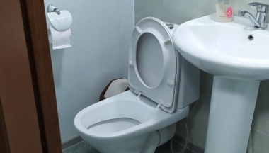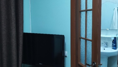 Из недостатков, душевая кабина старенькая. На дне трещены протекает немного. Кондёр шумно работает, тоже старенький.