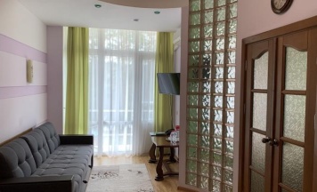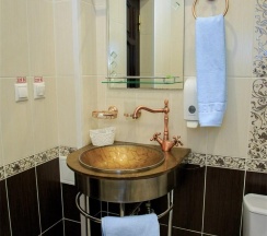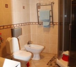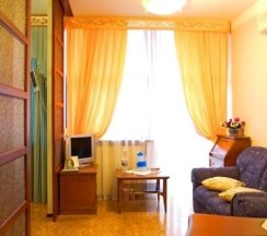 Гостиная оборудована мягкой мебелью, телевизором, журнальным столиком, зеркалом. Есть холодильник, чайник, телефон внутренней связи. Предлагаются фен и гладильная доска. Полностью оборудован санузел.