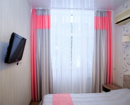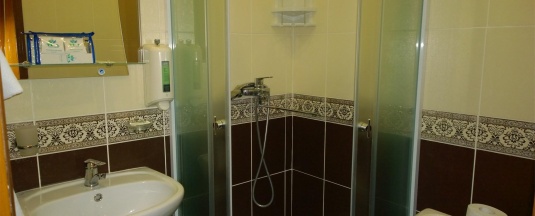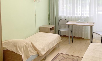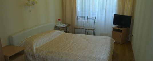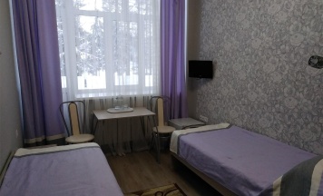 В двухместном комфортном номере 2 односпальные кровати, тумбочки прикроватные (2 шт.), стол с 2 стульями, шкаф, телевизор, холодильник, зеркало. Санузел оборудован туалетом, душем, имеются ванные принадлежности. На стенах - 2 бра.