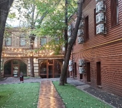 Особое удовольствие — внутренний дворик отеля. Днем – уединённое кафе, а вечером оживает кальянная с гулом голосов, музыкой и ароматным дымом. Не удивлён, что вечером здесь всегда полная посадка — место действительно притягивает настоящей атмосферой уюта и вдохновения!