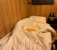 Отель понравился. Останавливалась в нём дважды. Недочёты, конечно же есть, все мы люди. В первый приезд админ был явно уставший. На просьбу дать мне другое полотенце, потому что выданное забыла в душе и во время уборки его забрали, сказал, что скорее всего не сможет мне помочь, потому что тот, кто заведует бельем, уже ушёл, но полотенце меньшего размера всё-таки где-то раздобыл,за что ему спасибо, а вот отелю надо подумать на тему запасных на такие случаи. Бесплатные чай и кофе только в первой половине дня, но всё остальное время стоит банка с нарезанными цитрусовыми,залитыми водой - это вместо кулера. В принципе идея вполне себе, у воды очень легкий привкус фруктов. Заселили быстро. Приехала четко к 14:00, попросили подождать мин 10. Днём пошла в душ, шампуня в банке не было, гель для душа имелся, запах приятный. Вечером, когда вернулась, баночки с моющими были полные. Туалетная бумага, бумажные полотенца в наличии. Огорчили в душевых фены. Во время сушки волос неоднократно выключались, приходилось перемещаться в соседнюю душевую, чтобы не идти с мокрой головой. Ужасно шумная сушилка для рук, даже просыпалась ночью, думая что это пылесос, пока не догадалась,что это кто-то руки сушит. В душевых теплые полы, очень классная вещь. В капсуле, конечно, как некоторые и писали, немного душновато, не смотря на вентилятор, который я не выключала даже когда уходила, приходилось проветривать. От метро в пешей доступности. С чемоданами на 4 этаж без лифта, конечно, не очень, но отель в этом не виноват. Столовых приборов и посуды хватает.Плита всего на 4 конфорки, но при мне в очереди никто не стоял чтобы приготовить поесть. На второй день по утру в раковине скопилось много немытой посуды, хотелось чтобы был какой-то механизм отслеживания тех, кто за собой не убирает. Почему-то была уверена что наличие холодильника предполагает наличие морозилки, но её не оказалось,пельмени или ешь весь пакет сразу или не покупай, наггетсы или мороженое на завтрак тоже отпадают