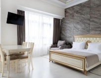 Отличный отель. Цена для центра Сочи хорошая. Персонал вежливый. Чисто. Вода горячая в душе и чистая в кулере❤️ Интерьер как во дворце Зевса😉 ⚡️ на стиле