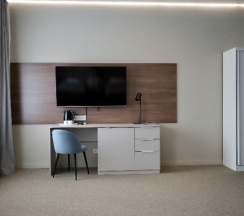 Хорошая, современная, чистая гостиница. Есть все для удобства- фен, полотенца, гигиенические наборы, вода, чайник, чай и пр. Есть закрытая охраняемая парковка. В здании очень хорошее кафе - готовят вкусно, хорошая подача. Рекомендую.