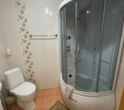 Номер с хорошими кроватями и прикроватными тумбами, ЖК ТВ, плательным шкафом, журнальным столиком, ванной комнатой с душем, туалетом, раковиной, туалетными принадлежностями (зубной набор, гель для душа, шампунь, мыло, полотенца).
