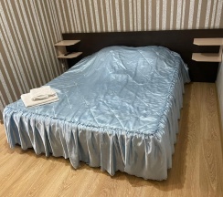 Просторный номер с балконом , двуспальной кроватью, ЖК ТВ, холодильником, плательным шкафом, столом и стульями, ванной комнатой с душем, туалетом, раковиной, туалетными принадлежностями (зубной набор, гель для душа, шампунь, мыло, полотенца, тапочки).