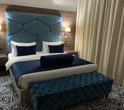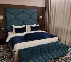 Номер Джуниор Сюит просторный, кровать комфортная – и подушки, и матрас удобные, шторы блэкаут (в белые ночи особенно важно).