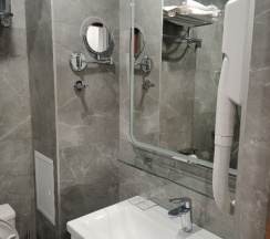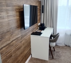 Останавливались на ночевку. Нам понравилось. Номер светлый, отдельно спальня, чисто, тихо. Видно что недавно был ремонт или обновление. Персонал не видно не слышно, но возникающие вопросы решались быстро. Лифт, что удобно для людей с ограниченными возможностями. Но колясочникам, следует внимательно выбирать конфигурацию номера. Мы немного просчитались и подъехать к ванной было проблемно, но я уже привычный. Внизу есть кафе, можно перекусить. Фотографий не делали, сильно уставшие были