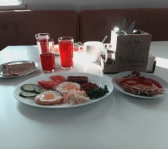 Завтраки вкусные, есть ресторан при отеле, хороший, пробовал окрошку, мороженое, морс, салат под шубой- всё было вкусно.
