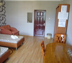 Кровать 180*200, ортопедический матрац, два кресла кровати, двух спальный диван. Одновременно в номере могут проживать до 6 человек, что очень удобно для командировочных и большой семьи. Постельное белье, полотенца меняются ежедневно.