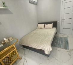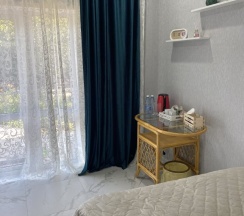 Не понравилось: как пожелание в спальне поставить сетку на окно от комаров . кровать очень удобная, но скрипит.