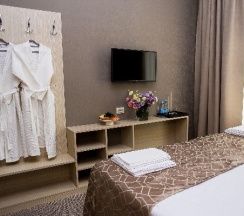 Понравилось: Чисто, уютно, в номере есть фен, тапочки, халат, чайник, чай, чашки, минихолодильник, это очень удобно!
