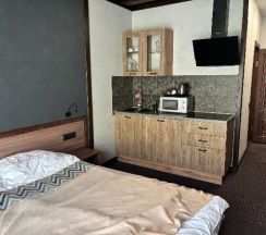 Комфортное проживание. Номер в идеальном состоянии. Красивый вид из окна и с балкона: горы, озеро. В номере - небольшая кухонная зона, есть всё необходимое для приготовления или разогрева. Брали тариф с завтраком - шведский стол.