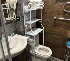 -самый "шик" это стеллаж для полотенец в туалете над унитазом, нижняя полка которого перекрывает кнопку слива и заставляют наездника принять позу эмбриона ( если открутить эту полку, то стеллаж не рухнет, а количество негативных отзывов резко уменьшится, если, конечно, это решение не применено для экономии воды и издевательства над гостями).