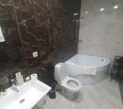 Всем, здравствуйте. Приехали, есть шлагбаум, но мест нет свободных, видимо попали в такой день, когда никто не хочет уезжать из дома. Отель находится в жилом доме. При заселении нас встретила доброжелательная, отзывчивая девушка. Заселились. Что самое главное в номере? Да, кровать! И кровать с хорошим матрасом. Муж мой имеет вес более 100 кг, матрас не подвел! Двери по всему отелю хорошие, шпон, ванная комната чистая! Это тоже очень важно! Мы много ездим по стране и отелей видели много. Поэтому оценка 5! Можно чуть обновить окраску стен, но это не так важно. Желаю процветания, всех благ и хороших, спокойных, чистоплотных постояльцев! Спасибо за отдых в отеле, нам это удалось!