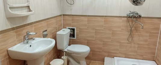 Трёхместный номер стандарт-есть всё для комфортного проживания: телевизор, вода, тапочки, стаканы и графин. В ванной комнате подготовлены: душевая, фен и предметы личной гигиены.