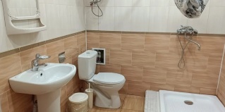 Двухместный номер полулюкс-есть всё для комфортного проживания: холодильник, чайник, телевизор, вода, тапочки, стаканы и графин. В ванной комнате подготовлены: душевая, фен и предметы личной гигиены.
