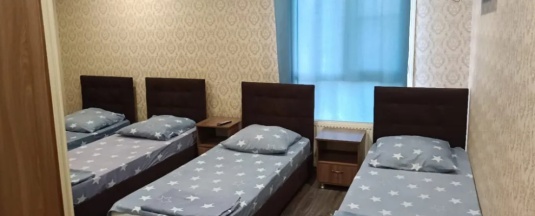 Четырёхместный номер стандарт - есть всё для комфортного проживания: холодильник, телевизор, вода, тапочки, стаканы и графин. В ванной комнате подготовлены: душевая, фен и предметы личной гигиены.