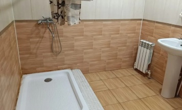 Душевая чистая, можно мыться без тапочек. На окнах сетка от насекомых.