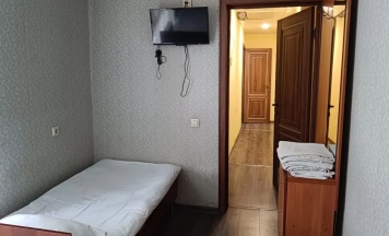 Одноместный номер стандарт-есть всё для комфортного проживания: телевизор, вода, тапочки, стаканы и графин. В ванной комнате подготовлены душевая, фен и предметы личной гигиены.
