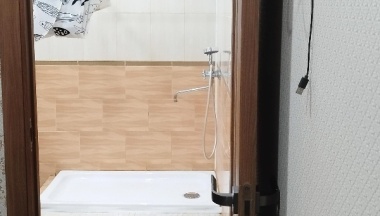 Душевая чистая, можно мыться без тапочек. На окнах сетка от насекомых.