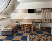 Останавливались тут на пути с юга. Позвонили, забронировали в дороге. Администратор Галина очень приветливая и вежливая. Проводила, все показала, объяснила. Подготовила к нашему приезду спальные места. Мы заказывали номер на троих, но помимо двухспальной кровати и раскладного кресла в номере, в другой комнате был еще диван, который тоже можно было разложить при необходимости. В номере все чисто и аккуратно. Постель белая, отглаженная. Подушки и матрас очень удобные. В номере не было неприятных моментов, в том числе плохих запахов. Достаточно просторно. Присутствует все необходимое. Чайник, кондиционер, холодильник, телевизор. В нашем номере была еще мини кухня. Тарелки, кружки, стаканы, вилки, ложки. На кухне даже присутствовала губка для посуды с моющим средством. Все удобства у нас были в номере. В ванне хорошая сантехника, были одноразовые щетки, мыло, гель для душа.