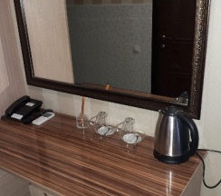 По сути неплохой номер для пребывания) Вот только шумоизоляция отсутсвует слышно вечно звонящий домофон, разговоры людей. Окна выходят на рынок, администратора сложно застать на ресепшен. Занижать сильно за минусы не буду так как чистый номер, большая кровать и красивый котик