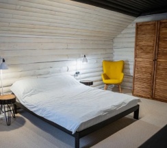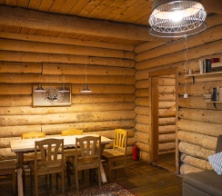 Красивый дом, вежливый персонал. Дорога такая себе, но у нас большая машина, поэтому проехали нормально. Тихо, спокойно, есть проектор для фильмов. Есть дрова, мангал. Много брикетов опилок для растопки дома, на ночь сильно топишь, но дом быстро остывает и уже в 3-4 часа ночи становится сильно холодно. Мы топили в 7 утра, потребовалось около часа примерно, чтобы тепло пошло на второй этаж, после того как дом остыл. Но это не минус, а нюанс. База отдыха прекрасная, приедем еще👍🏻