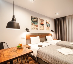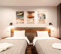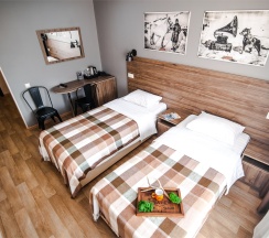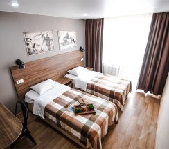 Комфортный номер отлично подойдет для размещения одного или двух человек. Арктический стиль и повышенная комфортность - отличительная особенность данной категории. Площадь номера 15 м2 .В распоряжении гостей две односпальные кровати 90х200 см., телевизор, рабочая зона, мини-холодильник, чайник, шкаф ,ванная комната, оборудованная душем, халат, тапочки, гигиенические принадлежности. При заезде комплимент от отеля - чай, кофе, сахар в номере. В каждом номере нашего отеля работает бесплатный Wi-Fi. Размещение на дополнительных местах в данной категории номеров не предусмотрено. Возможно размещение 1 ребенка в возрасте до 5 лет без предоставления места.