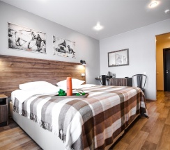 Комфортный номер отлично подойдет для размещения одного или двух человек. Арктический стиль и повышенная комфортность - отличительная особенность данной категории. Площадь номера 15 м2 .В распоряжении гостей двуспальная кровать 200х180 см., телевизор, рабочая зона, мини-холодильник, чайная станция, шкаф ,ванная комната оборудованная душем, халат, тапочки, гигиенические принадлежности. При заезде комплимент от отеля - чай, кофе, сахар в номере. В каждом номере нашего отеля предоставляется бесплатный Wi-Fi.