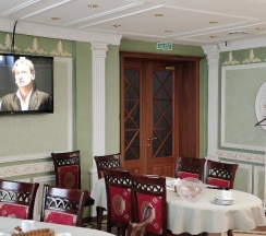 Очень удобное место если хочется уехать за город, так как в ГРК Смиронов кроме 3х банкетных залов есть номерной фонд, цены на проживание вполне доступные, номера чистые. Рядом находится красивейшая набережная, мы воспользовались этой красотой и сделали кучу фотографий наших выпускников. Для проведения выпускного выбрали самый красивый зал Европейский, в белых тонах и зеркалах, зал очень красивый, дополнительного украшения не понадобилось. Зал вмещает до 64 человек, тесно нам не было, хватило места и для активностей. Столы сервируются красивой посудой и приборами, белые скатерти. Очень разнообразное меню, чек на гостя у нас получился в пределах 1600,00 очень демократично, порции большие, мы заказывали три салата, горячее, рулетики из ветчины, сырную тарелку, овощи и фрукты, морс, пирожки. Всё было очень вкусно. Можно принести своё спиртное, пробкового сбора нет. Персонал ГРК Смирнов встретил нас приветливой улыбкой, отвечали на все вопросы, не навязывали лишних услуг. Банкет обслуживали два официанта, очень шустрые молодые ребята Екатерина и Богдан. Рекомендую родителям выпускников выбирать Смирнов для проведения выпускного вечера.