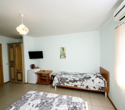 В гостевом доме есть кондиционер в номерах, можно с животными и другие удобства.