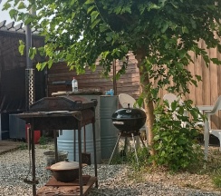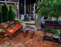 Отдельное место для курения, где стоит специальный столик под кальян, есть небольшой мангал-барбекю, и круглый барбекю.