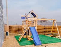 Есть классная продуманная детская площадка, гамак, две качели и для взрослых и для детей.
