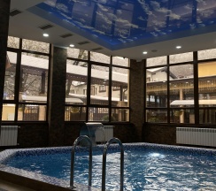 Хороший отель. Из плюсов: чисто, хороший персонал, расположение(в 2 шагах остановка), вкусные завтраки, так же в ресторане очень вкусно(советую попробовать хачапури 🔥), вид из номера был на горы. Из минусов могу отметить - то что иногда был запах канализации в туалете, и что в описании не указано, что сауна платная и долго в бассейне не полежишь, т.к. когда вылезаешь, то кажется, что прохладно, чисто из-за этого 4 звезды только.