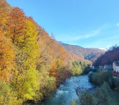 Отель и номера в стиле старинного кавказского дома, очень атмосферно. У нас был номер во двор с балконом, но отлично было слышно и видно речку с горами. В номерах есть все необходимое, начиная с косметических средств, заканчивая утюгом и гладильной доской. Возможно, немного темновато в номерах, зато все выдержано в стиле отеля.
