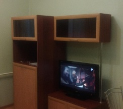 Шесть полотенец, два халата, тапочки, зубной набор, бритвенный набор, двухспальная кровать, телевизор, кондиционер, холодильник, шкаф, вешалки под пиджаки и брюки.