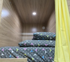 Индивидуальная капсула для сна (наличие женских и мужских мест желательно уточнить у администратора по тел. +79241027026, при получении бронирования сверх лимита женских либо мужских мест, администрация может отказать в заселении по гендерному признаку). Оснащена ортопедическим матрасом, розеткой, вентиляцией, освещением, закрывается шторкой. в помещении оборудована система приточно-вытяжной вентиляции и кондиционирование.