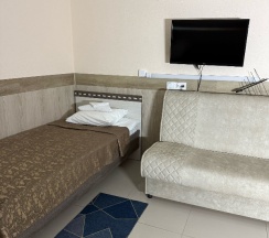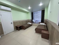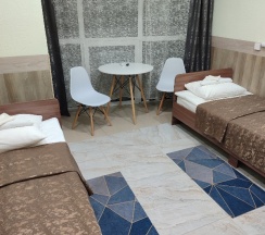 Останавливались в трехместном номере трое взрослых проездом по дороге на Байкал. В гостинице очень чисто, большой номер: две односпальные удобные кровати и двуспальный диван, чистое постельное белье и полотенца. Телевизор, большая ванная комната. На 2-м этаже находится уютная кухня с двумя столами, двумя электрочайниками, двумя холодильниками, плитой, всей необходимой посудой. Сам гостевой дом находится во дворах жилых домов, среди обилия зелени, прекрасный воздух и вид. Есть доп. услуги: массаж, spa, фитотерапия. Всё понравилось, рекомендую!